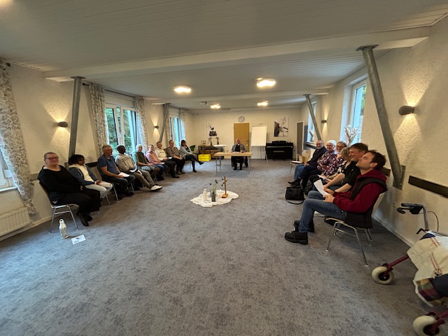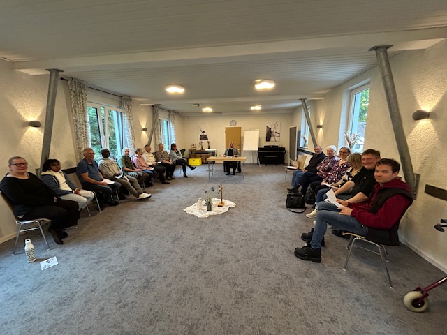 17 Kolleginnen und Kollegen trafen sich am 6. Oktober zu einer neuen Rüstzeit, der „Stillen Zeit“ um 10 Uhr auf dem Parkplatz der Gästehäuser, es war wieder mal eine freudige Begrüßung. Bevor es in die Zimmer ging, versammelten wir uns im Seminarraum, in dem uns Steffen Schön aus dem Hausleitungsteam herzlich begrüßte und uns die wichtigsten Informationen der nächsten Tage mit auf den Weg gab.