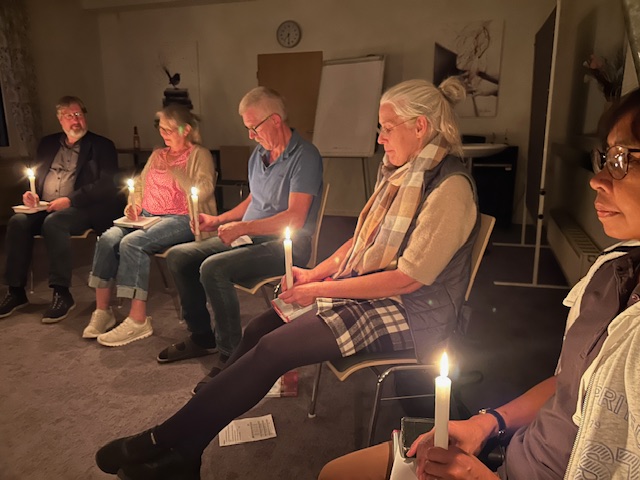 Nach dem Abendessen feierte Anke mit uns eine besinnliche Kerzenandacht, in der alle eine Kerze in der Hand hielten und die Flamme beim Nachbarn entzündeten, so dass wir sozusagen alle mit dem Licht verbunden waren. Eine kurze Unterhaltung entstand nach der Andacht im Kerzenschein der 18 brennenden Kerzen.